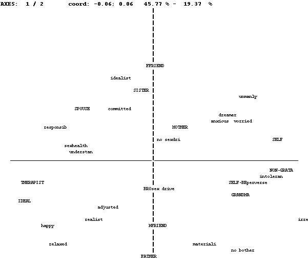 Figure 3: Conjoint graph for axis 1 (horizontal) and 2 (vertical) produced by the CA of Daniel's grid.
