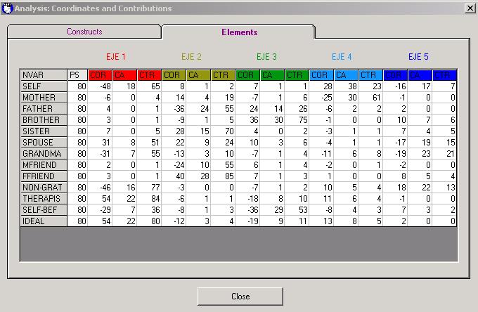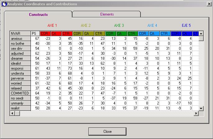 Table 3: Coordinates and contributions resulting from the correspondence analysis of Daniel's grid