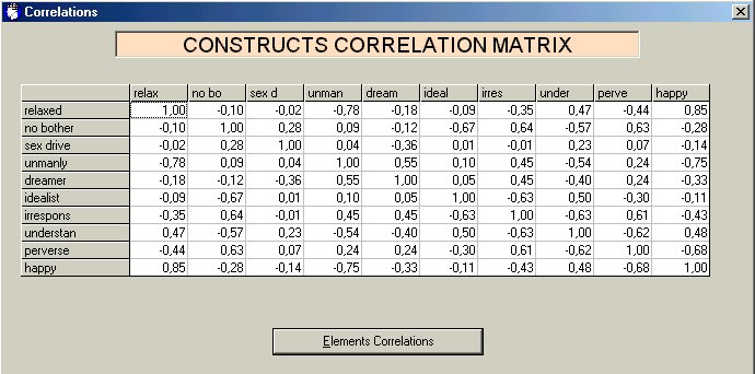 Table 5: Correlation matrices for the elements and constructs of Daniel's grid