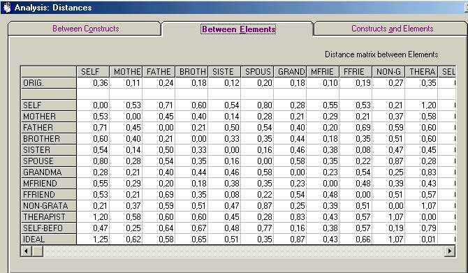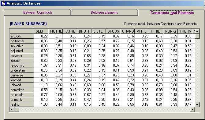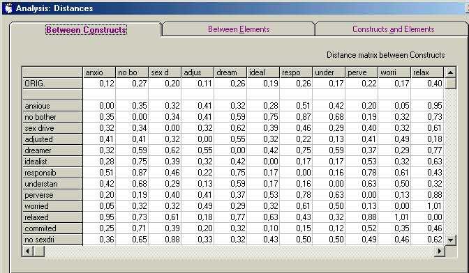 Table 4: Distance matrices for the elements and constructs of Daniel's grid